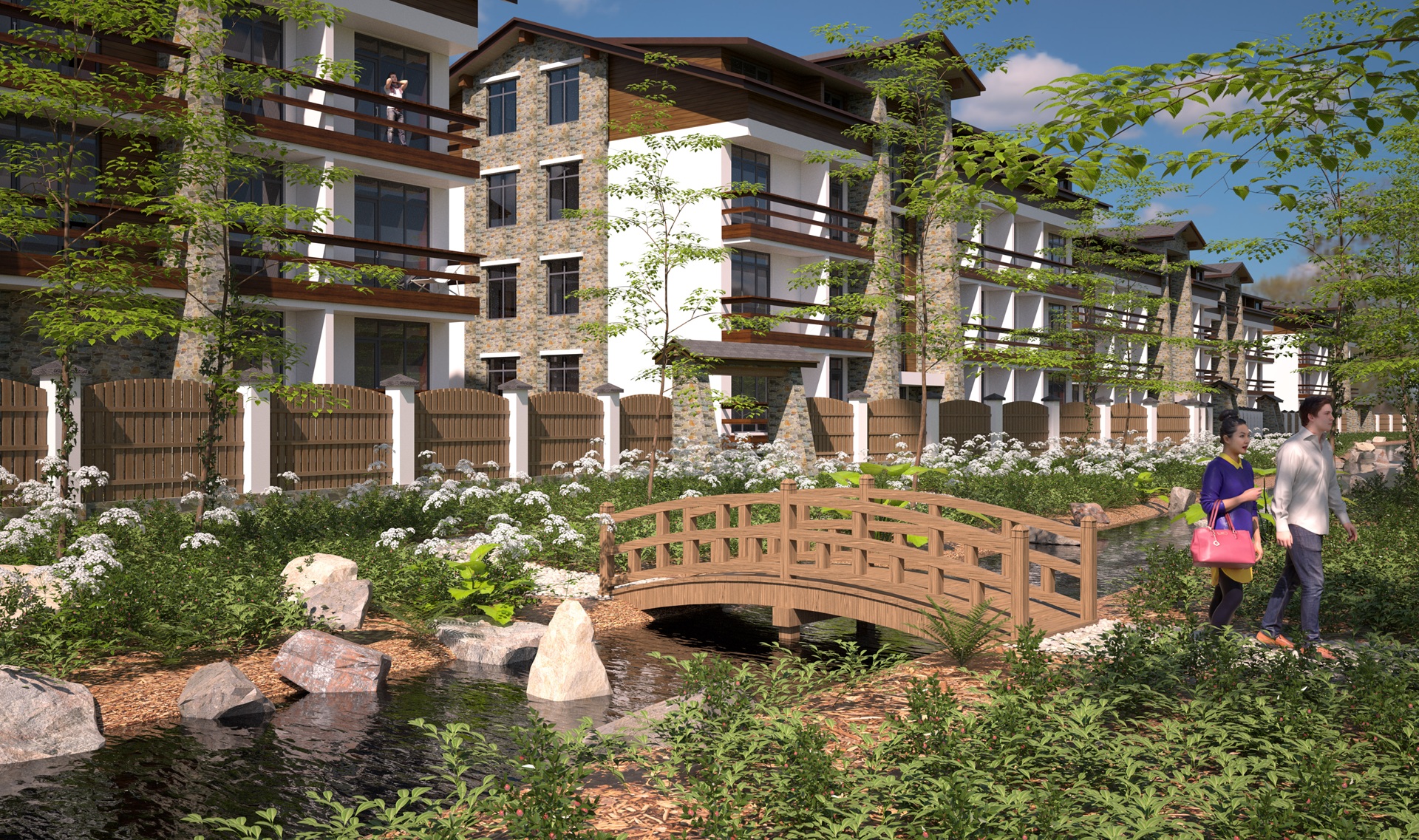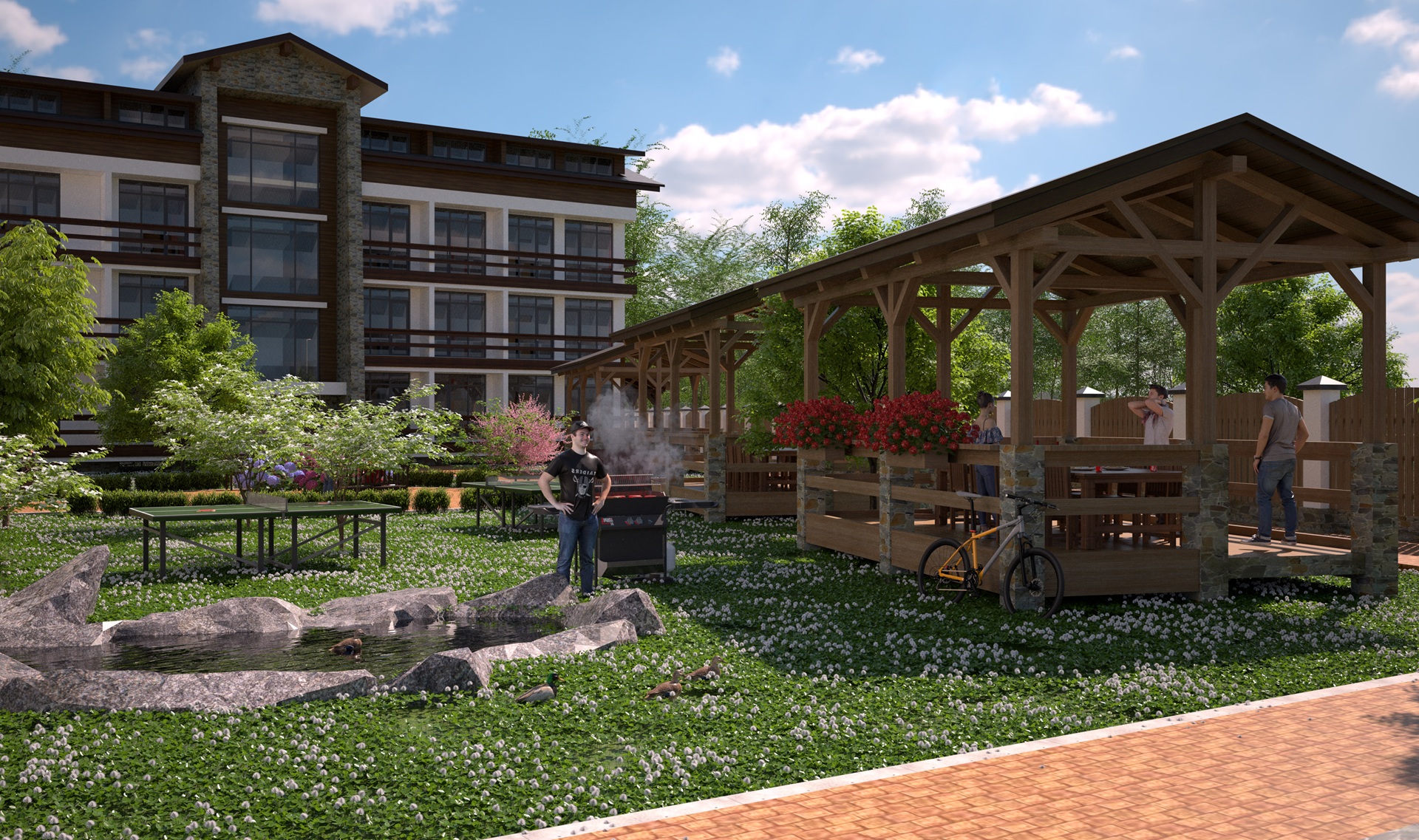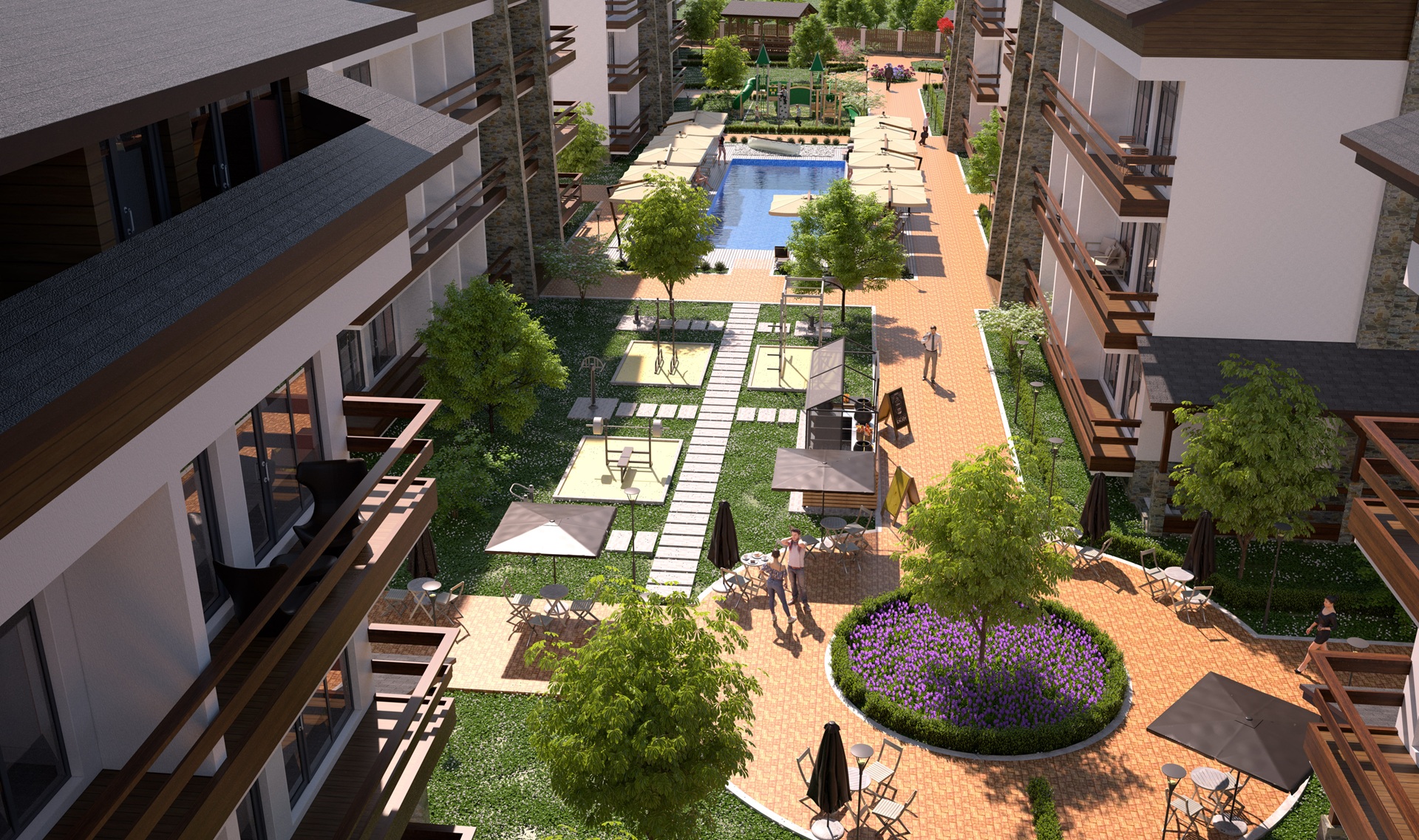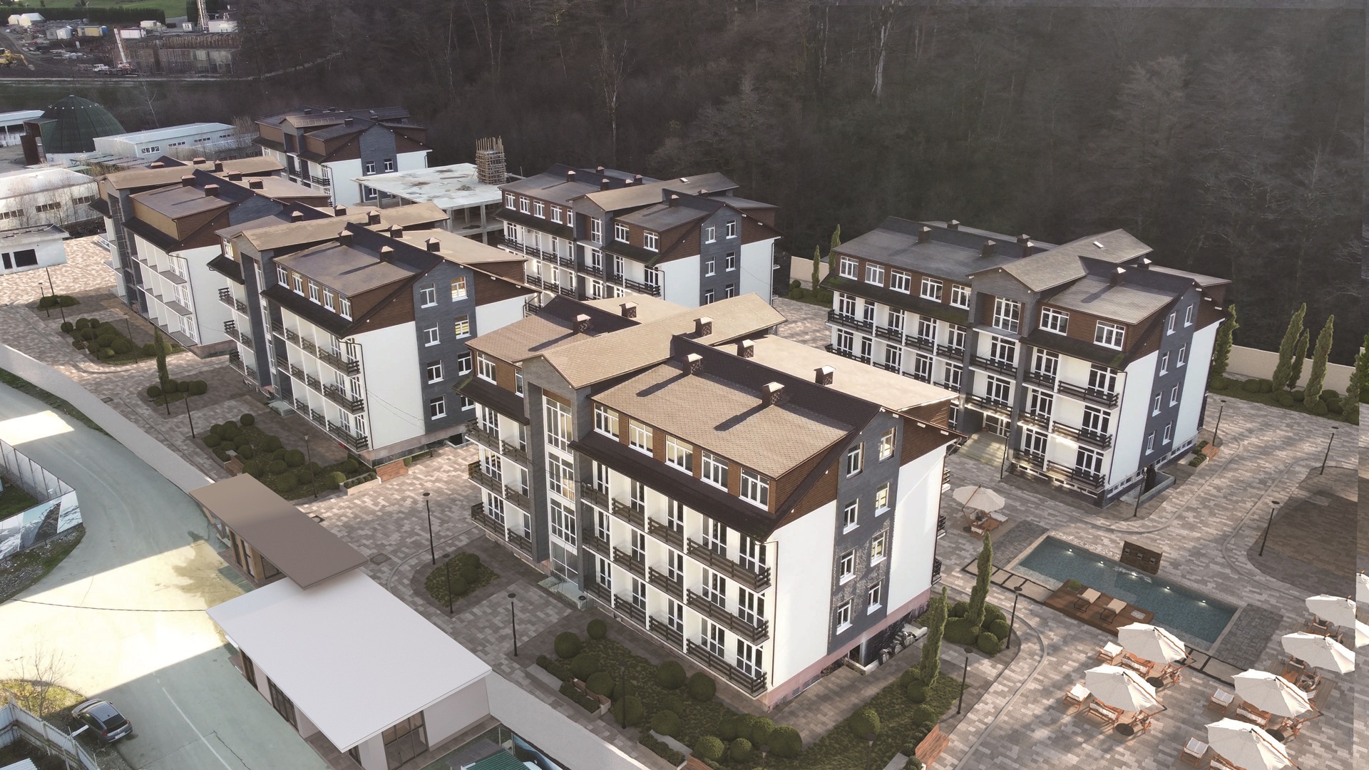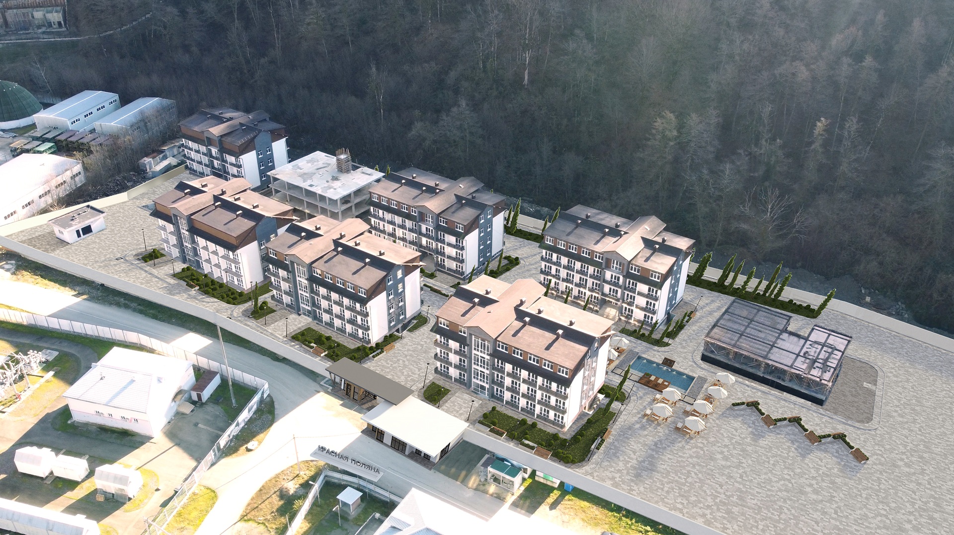 Апартаментный комплекс «Поляна Парк» - это трехэтажные жилые здания клубного типа, в едином архитектурном исполнении, реализованные в стиле шале. Застройщик предусматривает возможность объединения нескольких апартаментов свободной планировки площадью от 23 до 45 м² в одни большие